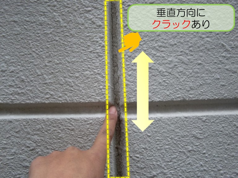 高石市のS様邸の外壁の縦目地に発生したクラックです。