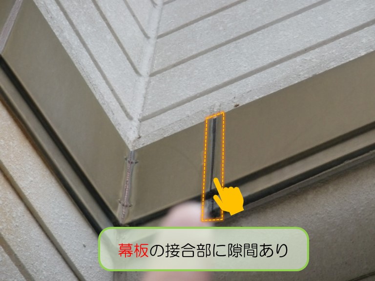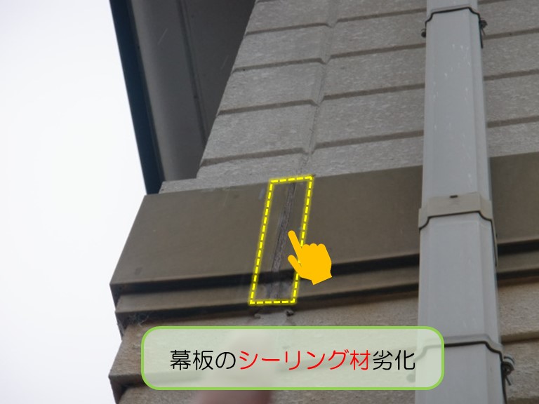 外壁の角付近や幕板の接合部分で、シーリング材の劣化が進行していました。