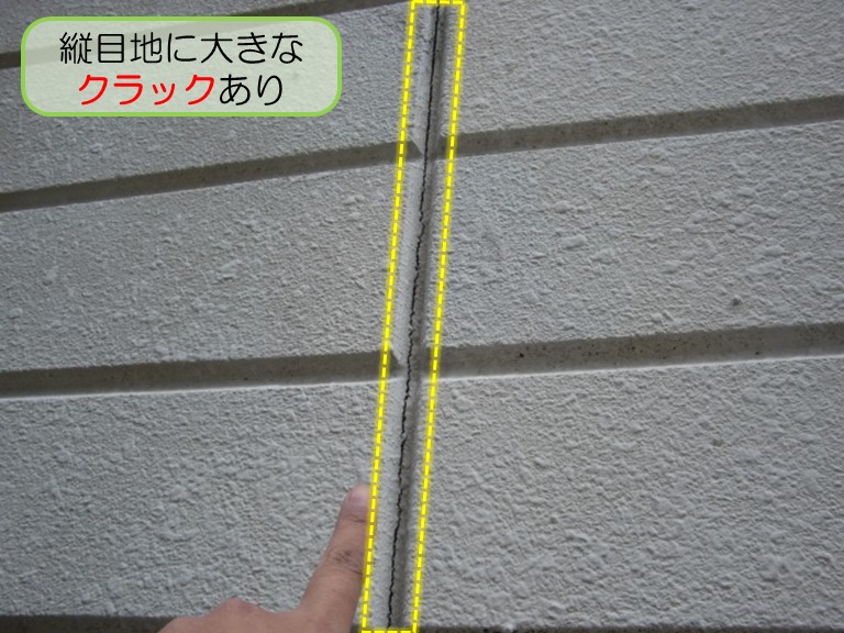 高石市S様邸の外壁の縦目地に、これまでで最も大きなクラックを発見いたしました。