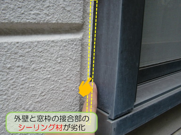 高石市S様邸の窓枠と外壁の接合部で進む劣化