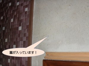 岸和田市下池田町の耐震改修工事で前日、二階の洋室の壁に珪藻土の下地を塗りました。