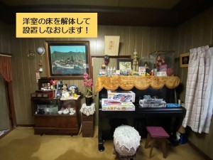 洋室に置いていたピアノや家具を移動させてから床の解体作業を行いました。