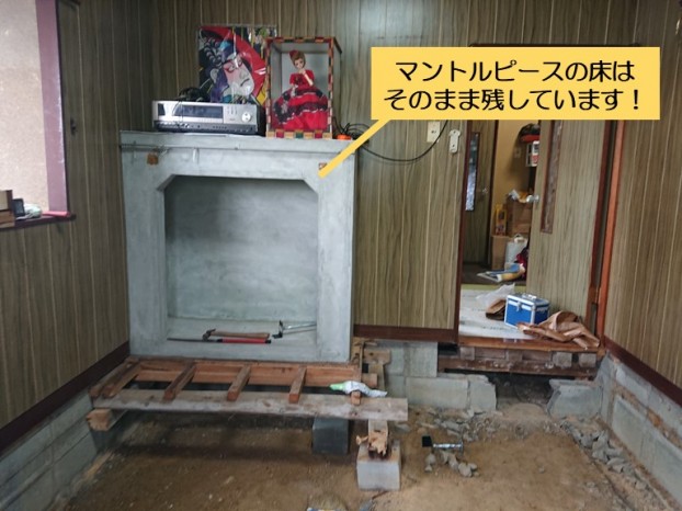 マントルピースはコンクリート製で重量があり、壁にしっかりと固定されていますので、そのまま動かさずに下から床を補強することになりました。