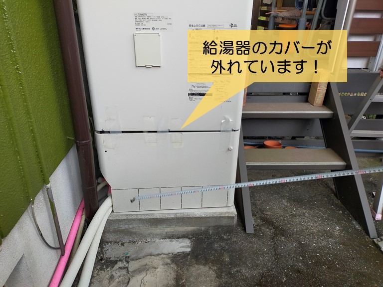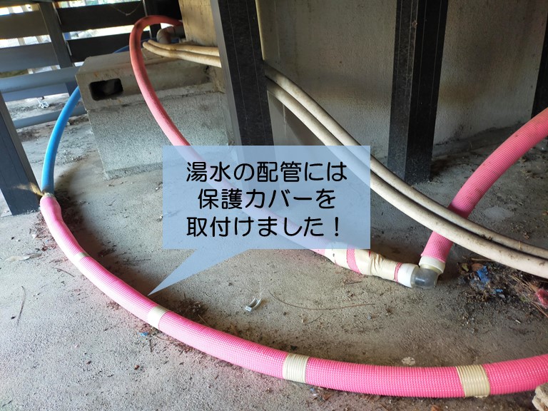 岸和田市の給湯器のカバーを固定し湯水の配管の保護カバーを取付 11/29