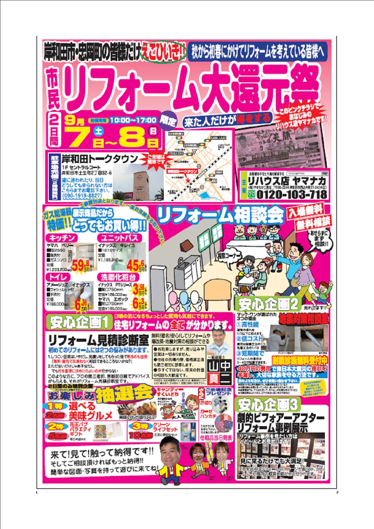 9月7日(土)8日(日)東岸和田トークタウンで「市民リフォーム大還元祭」開催!