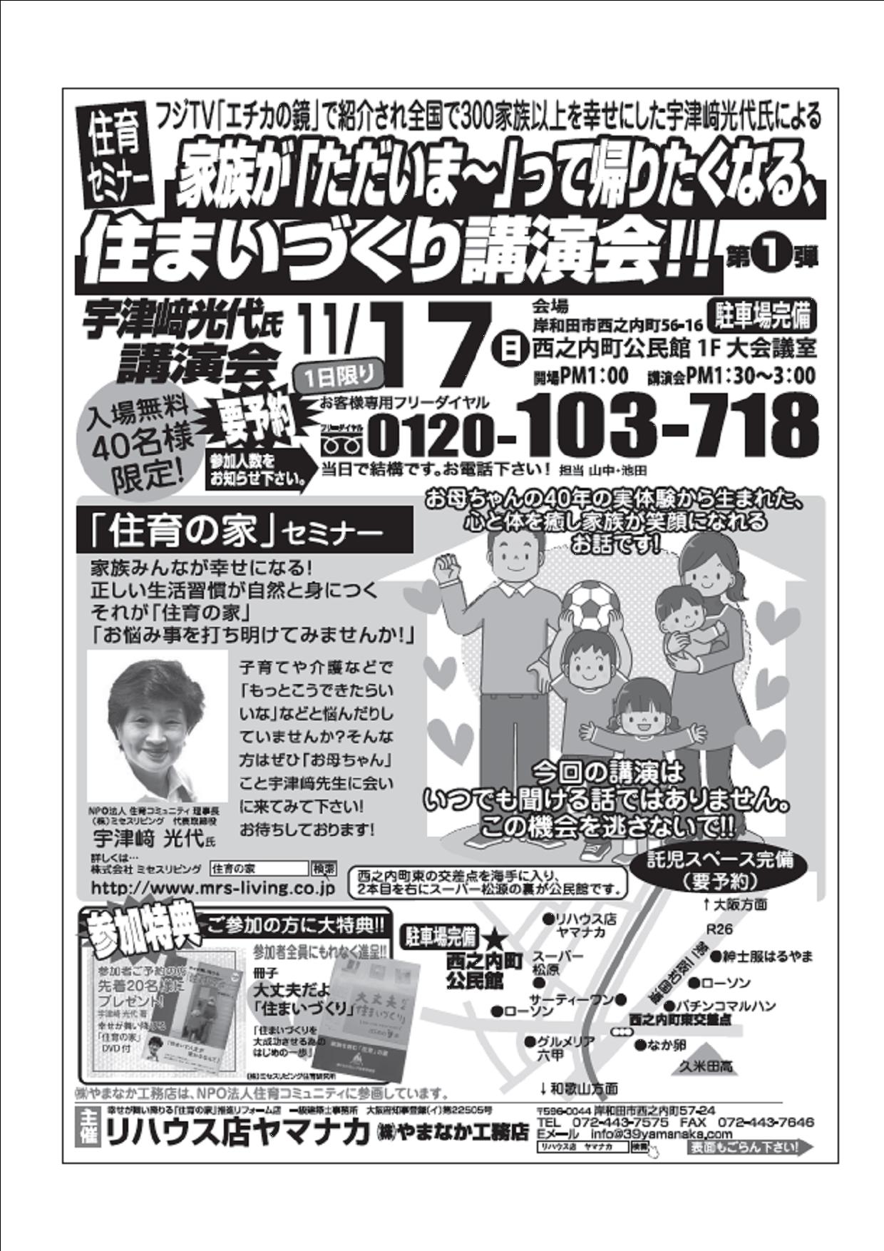 11/17(日)家族が「ただいま~」って帰りたくなる家・住育セミナー開催