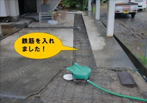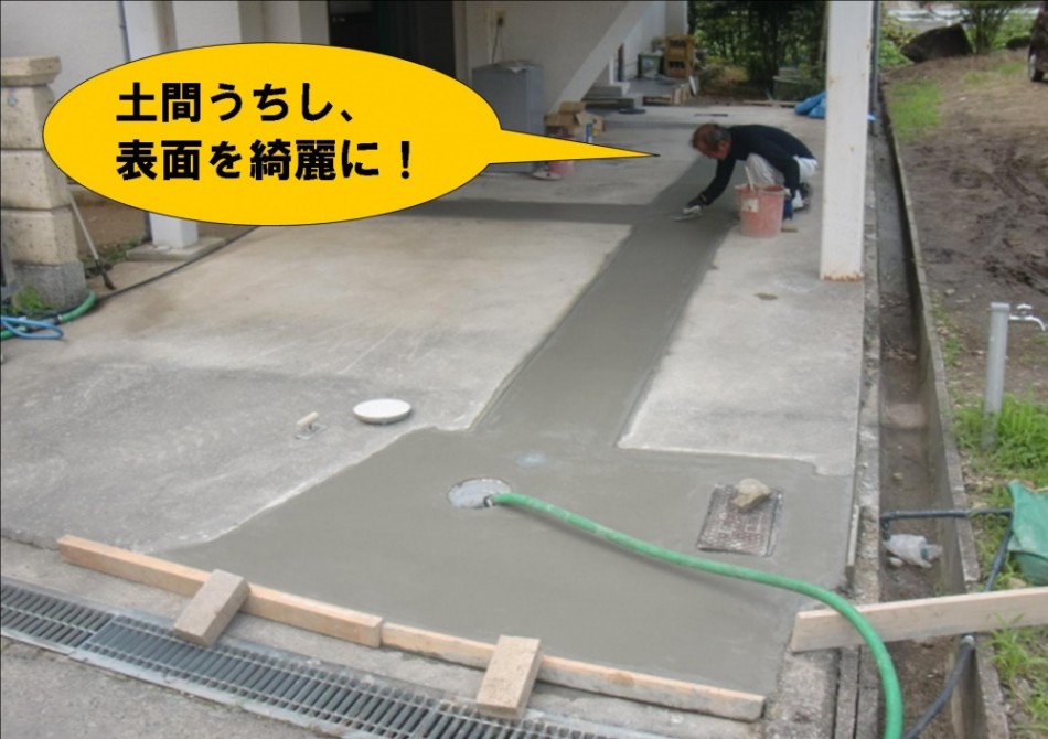 鉄筋の上からコンクリートで土間をうち、最後に表面をコテで綺麗に整えて工事完了です。