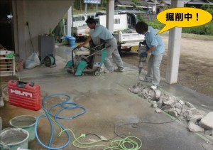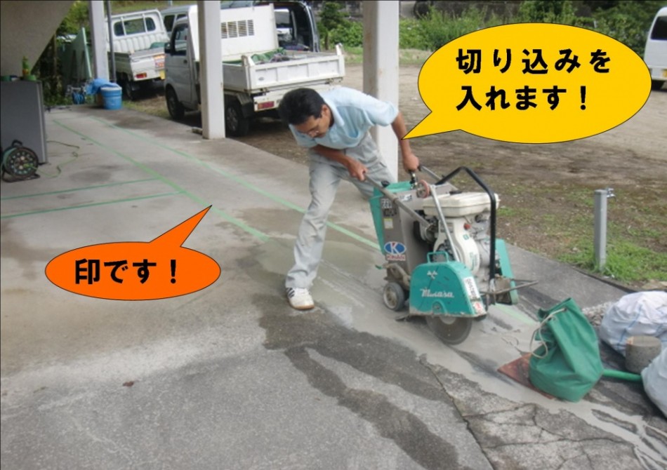 そこに電動カッターで切り込みを入れていきます(周りのコンクリートを崩してしまわないように)