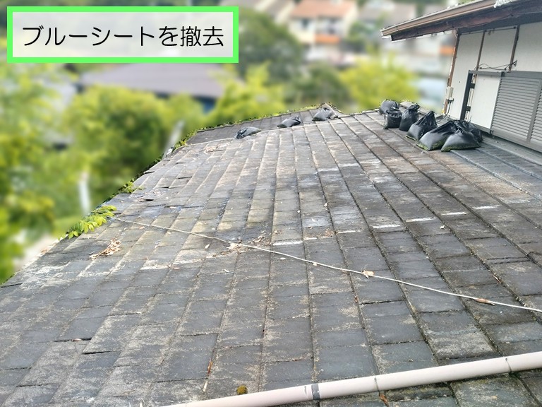 まずは、古くなったブルーシートを慎重に取り外し、撤去していきます。