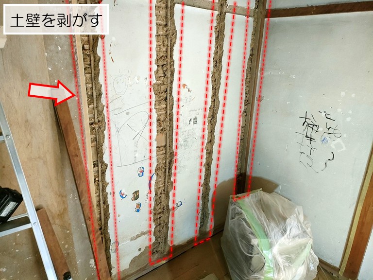 まず、既存の土壁を慎重に取り除くところからスタートです。