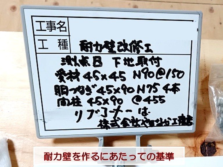 築年数の経過により耐震性能が不足していた壁を、構造用合板と耐震金物を使用した耐力壁へと全面的に作り替えました。