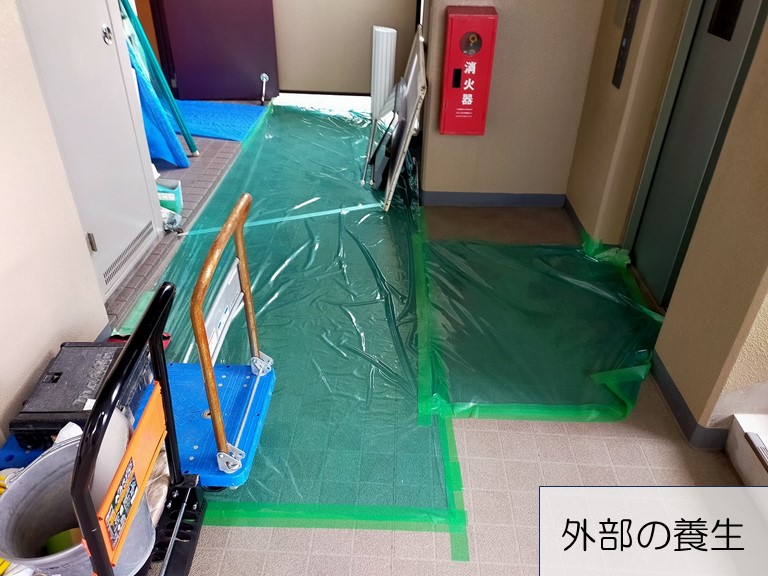 マンションでの工事の場合、お部屋までの通路も養生します