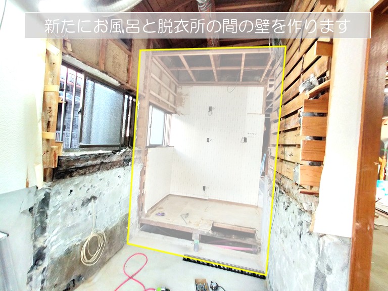 今回のリフォームでは、既存の壁を撤去することで浴室スペースを広げ、よりゆったりと使えるお風呂へと生まれ変わりました。