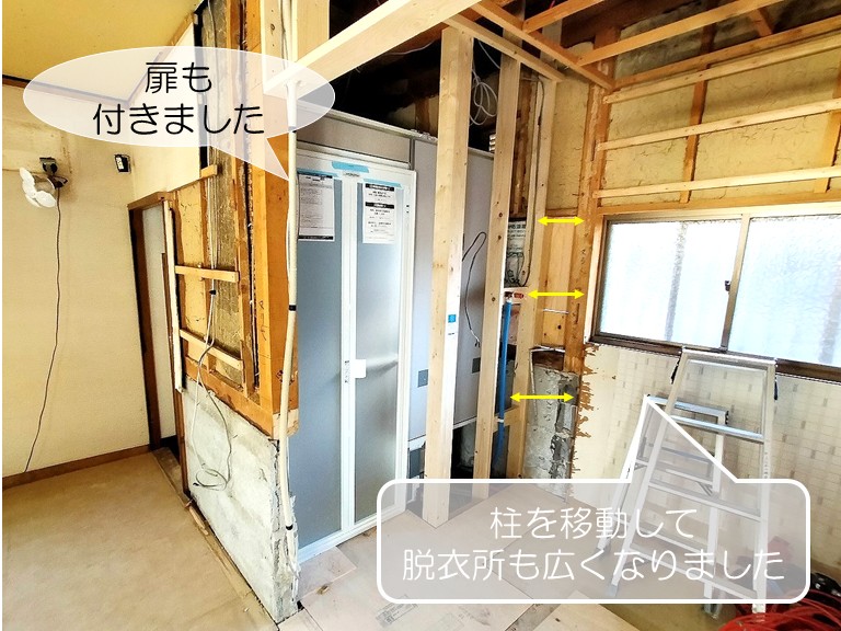 これまで隠れていた大きな窓も見えるようになり、明るく開放的な脱衣所へと生まれ変わっています。