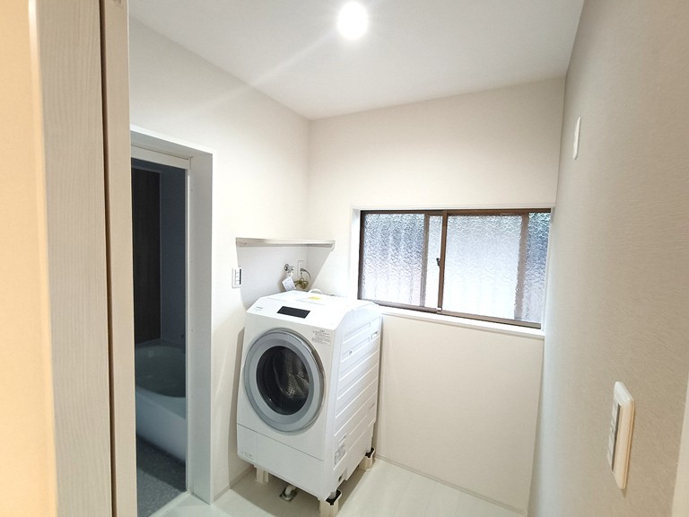 リフォーム後は、脱衣所のスペースを広げたことで、洗濯機を設置しても十分なゆとりが生まれました。