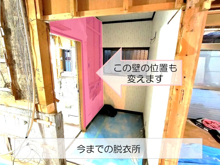 リフォーム前の脱衣所は、お風呂と同様にやや手狭で、着替え用のタンスを置くとスペースがほとんど埋まってしまう状態でした。