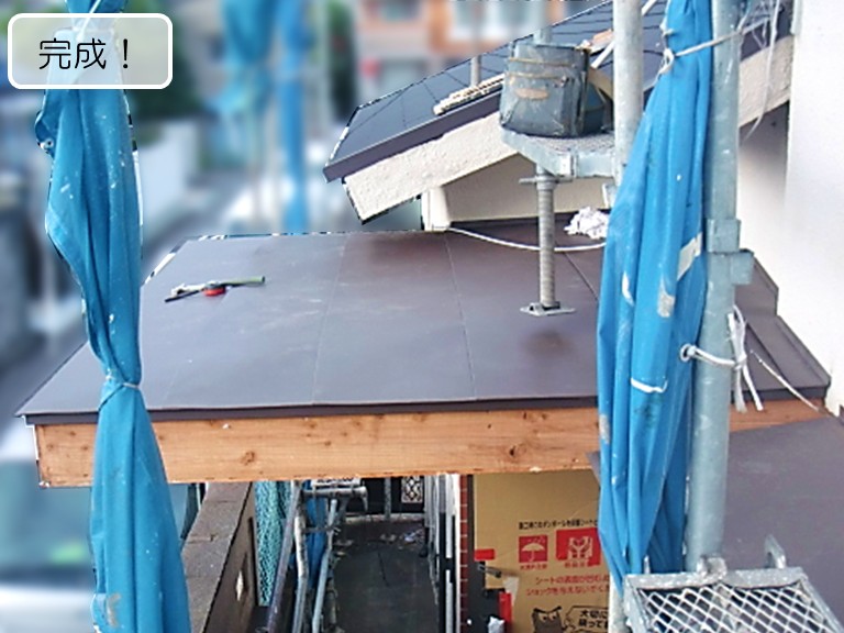 ・庇の板金屋根修繕工事(2.ガルバリウム鋼板設置)