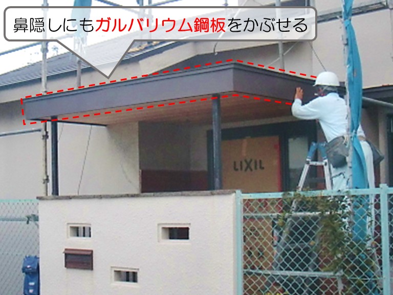 鼻隠しは雨風の影響を受けやすい場所なので、屋根と同じガルバリウム鋼板でしっかりと覆うことで、一体感のある防水仕上げが完成します!