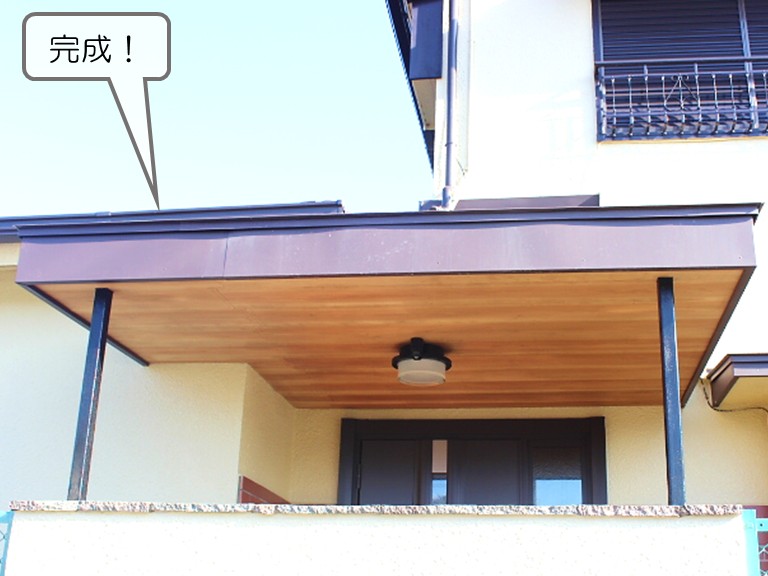 ガルバリウム鋼板は耐久性・耐候性ともに優れているため、これからも長きにわたってK様のお家の玄関ポーチを守り続けてくれます