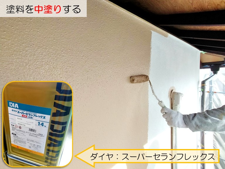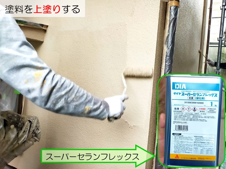 中塗りしたスーパーセランフレックスが完全に乾いたら、上塗りにもスーパーセランフレックスを塗装します。