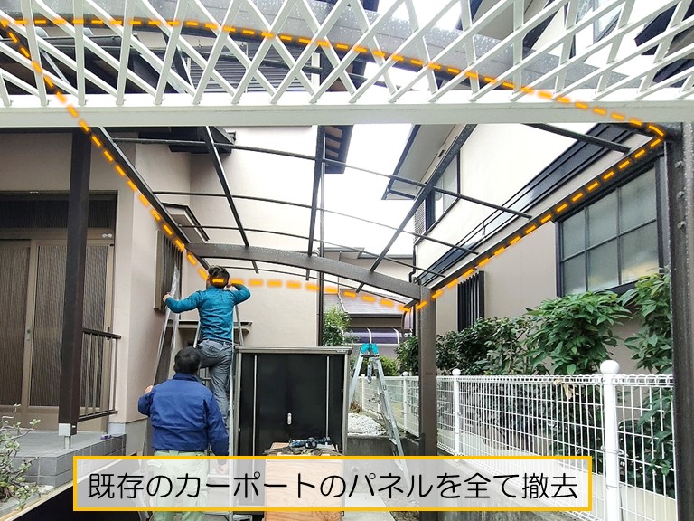そのため、カーポートとテラスのパネルを一部分のみ一旦外してから、