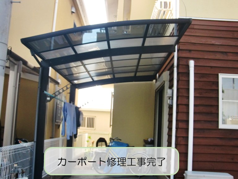 泉大津市A様邸のカーポート修繕とポリカ平板交換工事が完了