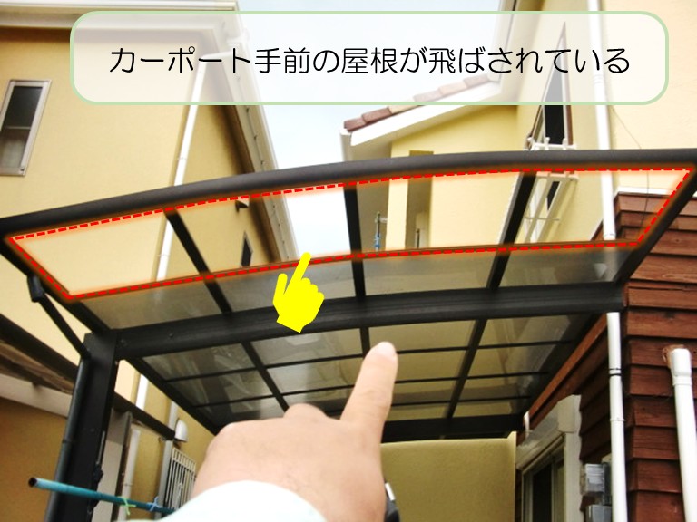 泉大津市A様邸の洗濯物干し場としてのカーポートも被害