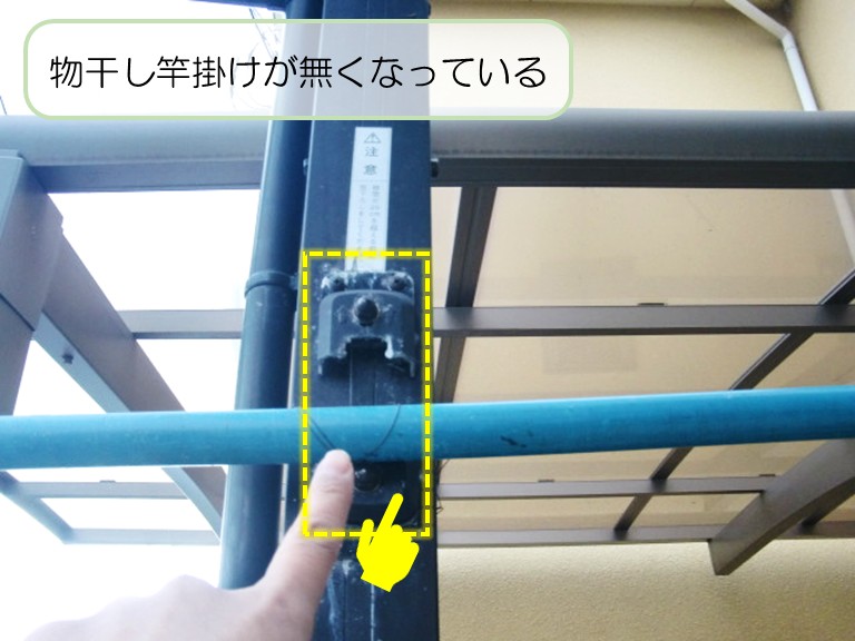 カーポートの屋根が飛んでしまった側の竿掛けも一緒に無くなってしまっていました。
