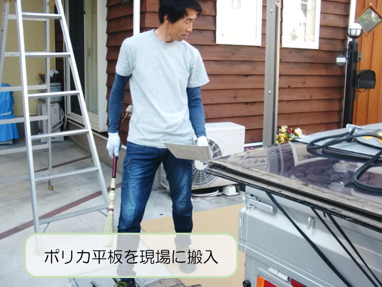 泉大津市A様邸に新しいポリカーボネート平板を現場に搬入