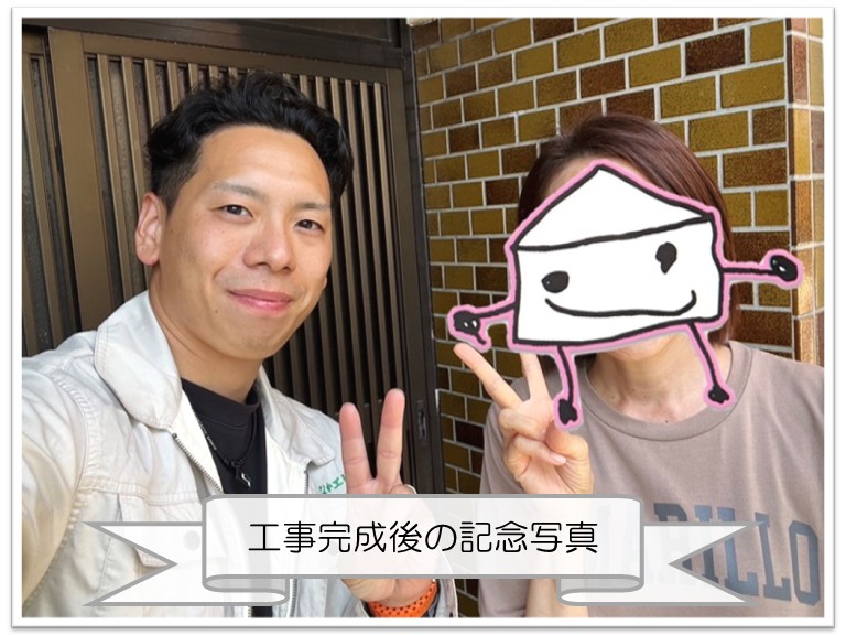 熊取町 O様邸での軒先饅頭瓦差し替え工事が完成した後、記念写真を撮影していただきました。
