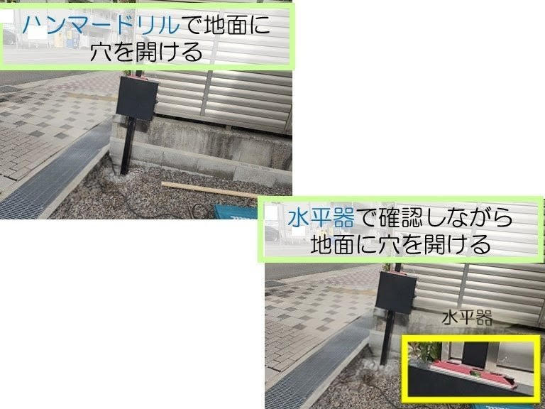 泉佐野市K様邸の郵便ポストとインターホンの付いている柱の地面に穴を開ける