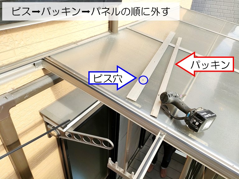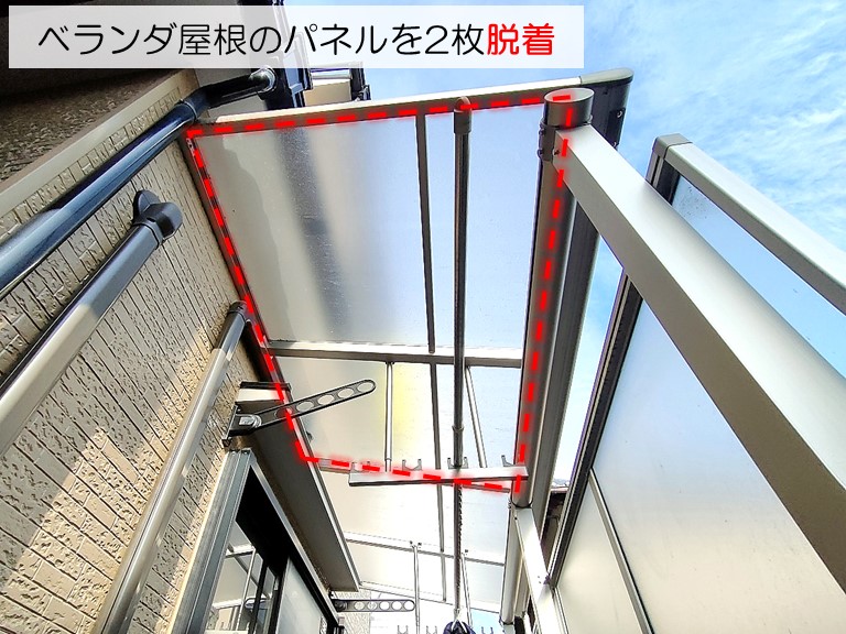 岸和田市で行ったベランダ屋根のパネル脱着の方法をご紹介します 約4万円(工期 2日)