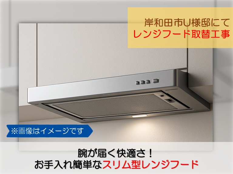 岸和田市でレンジフード取替工事!腕が届く快適さ(約20万円:工期1日)