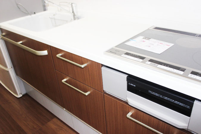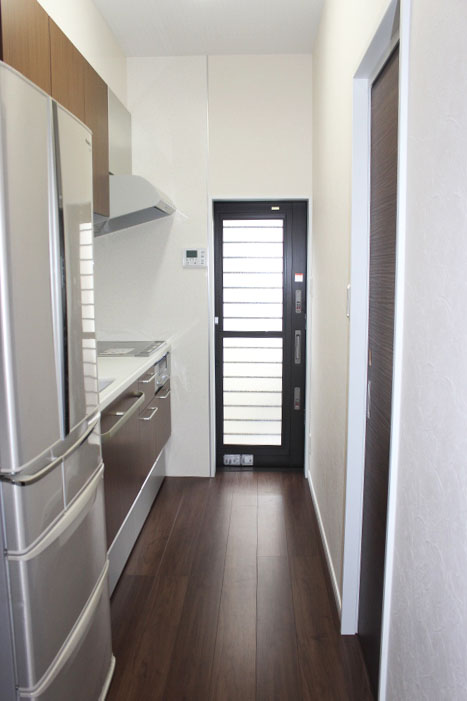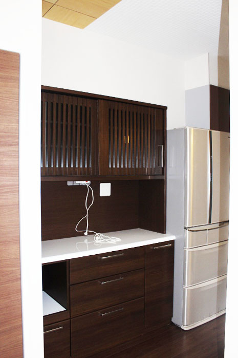 食器棚、冷蔵庫を置くスペースを計算して間取りを設計したので、すべてきっちり収まり、使いやすいキッチンになりました。