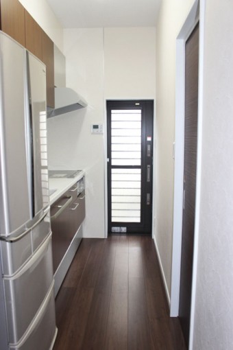 キッチンの横にお風呂と洗面室を設置する為、新しいキッチンは向きを変えて設置!