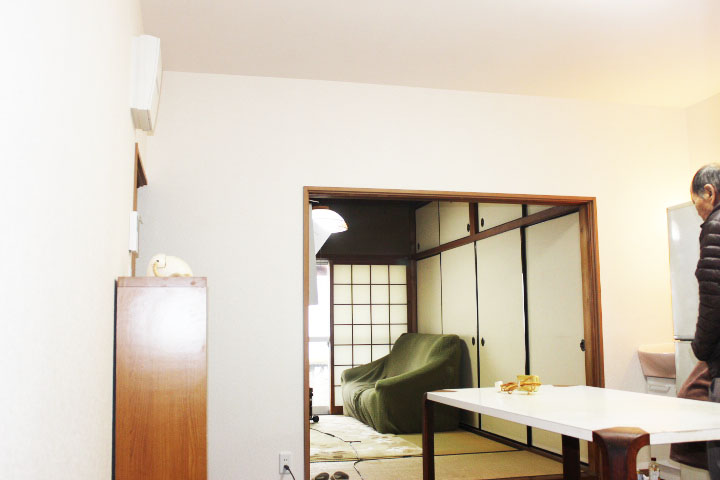 キッチン、ダイニングの床・壁・天井も張替え、明るく大変身!S様にもご満足いただけました。