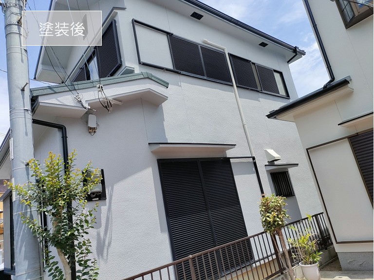 岸和田市の外壁塗装で明るい色のパーフェクトトップを使用!約84万円・工期7日間 1/19